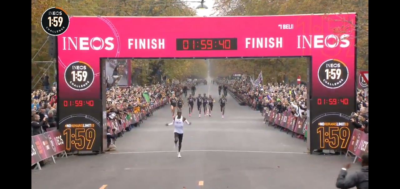 Кипчоге на финише. Скриншот из видео, Eliud Kipchoge в Twitter