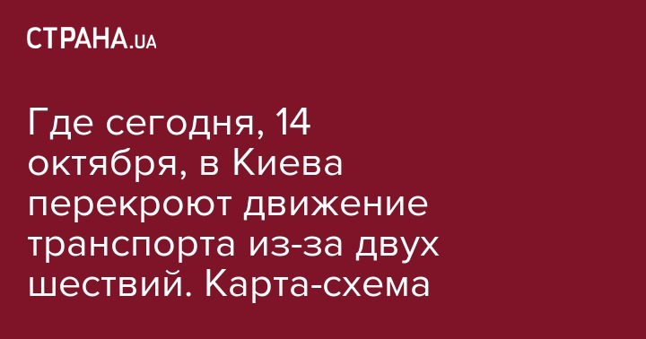 В понедельник, 14 октября, в центре Киева состоятся сразу два шествия, из-за которых будет перекрыто движения транспорта. Об этом сообщает на своем Facebook патрульная полиция Украины.