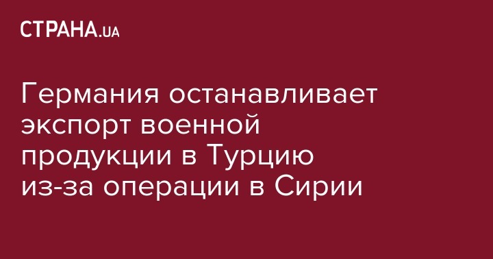 Глава МИД ФРГ Хайко Маас заявил, что власти ФРГ останавливают выдачу разрешений на поставки военной продукции в Турцию в связи с начатой Анкарой на северо-востоке Сирии операции "Родник мира". Об этом сообщает "Интерфакс".