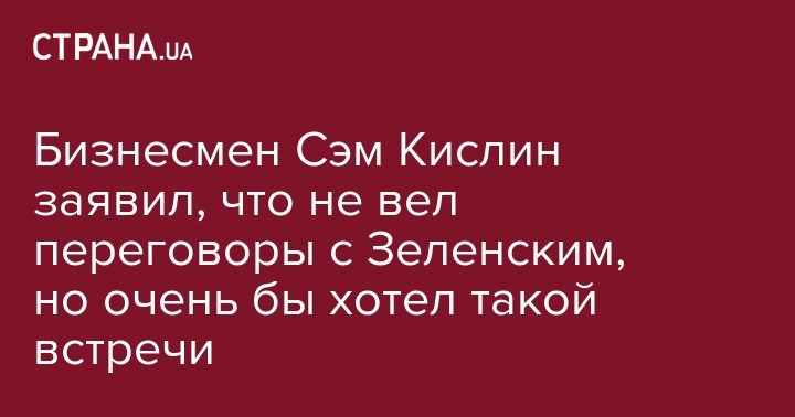 Бизнесмен Сэм Кислин заявил, что не вел переговоры с Зеленским, но очень бы хотел такой встречи