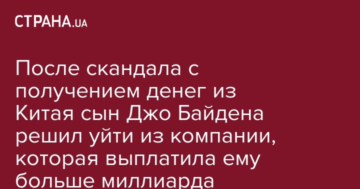 После скандала с получением денег из Китая сын Джо Байдена решил уйти из компании, которая выплатила ему больше миллиарда