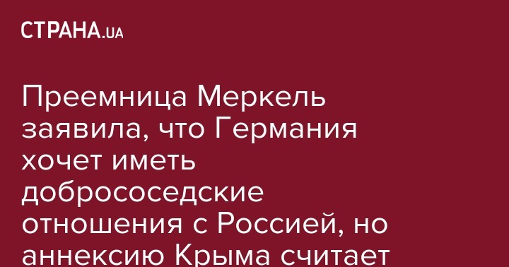 Преемница Меркель заявила, что Германия хочет иметь добрососедские отношения с Россией, но аннексию Крыма считает "нарушением"