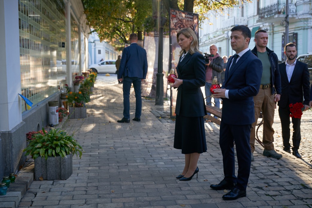 По случаю Дня защитника Отечества, который сегодня отмечают в Украине, президент Владимир Зеленский и первая леди Елена Зеленская пришли к Стене памяти павших за Украину, которая расположена у Михайловского Златоверхого монастыря в Киеве. Об этом сообщается на сайте главы государства.