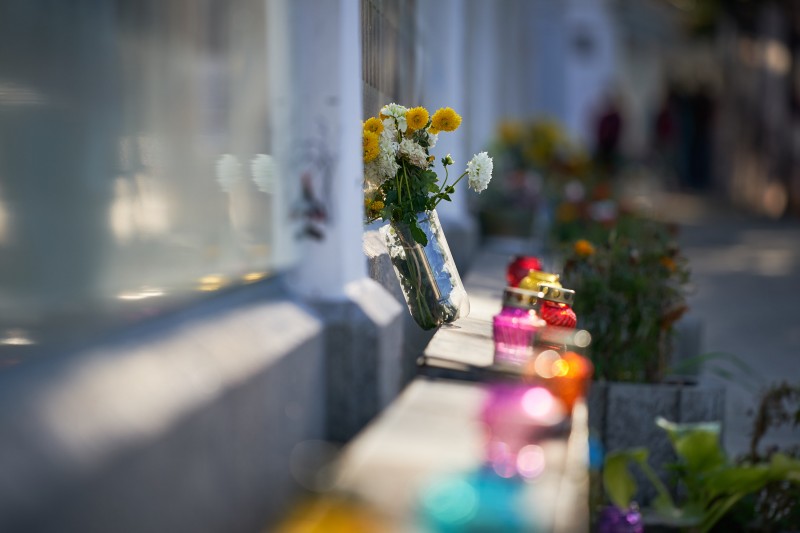Президентская чета возложила цветы и установила лампадки у Стены с именами погибших за единство Украины военнослужащих и правоохранителей и почтили минутой молчания их память.