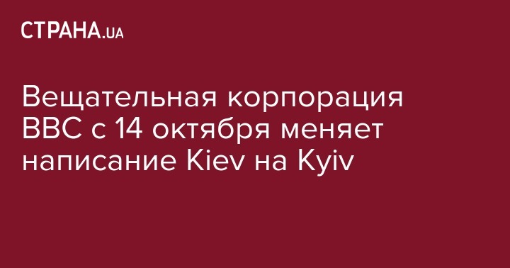 Вещательная корпорация ВВС с 14 октября меняет написание Kiev на Kyiv