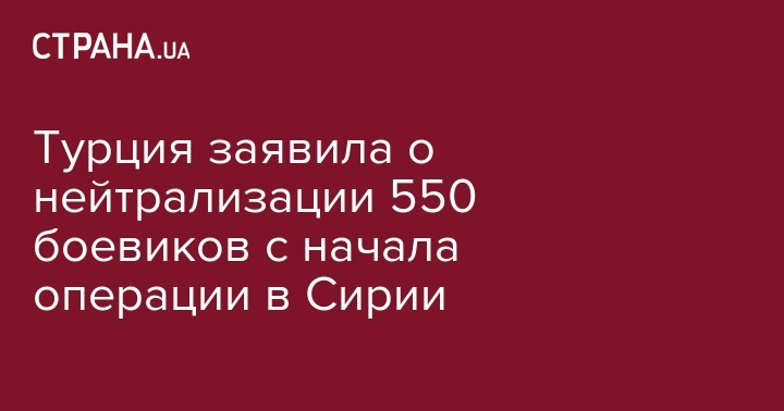 Турции удалось нейтрализовать порядка 550 боевиков с начала операции на северо-востоке Сирии. Об этом сообщает "Интерфакс" со ссылкой на газету Daily Sabah.