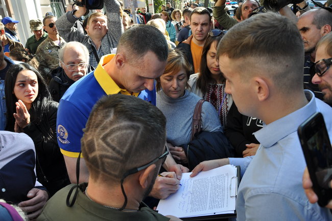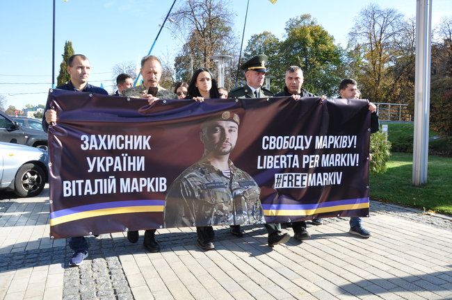 В поддержку Виталия Маркива выступила его жена Диана, которая возглавляла колонну. Также присутствовал и выступал украинский режиссер Олег Сенцов, освобожденный из заключения в РФ в рамках обмена удерживаемыми лицами. Супруга Маркива заявила, что не верит в то, что он причастен к убийству, а дело против него - это обвинение в сторону всей украинской армии.