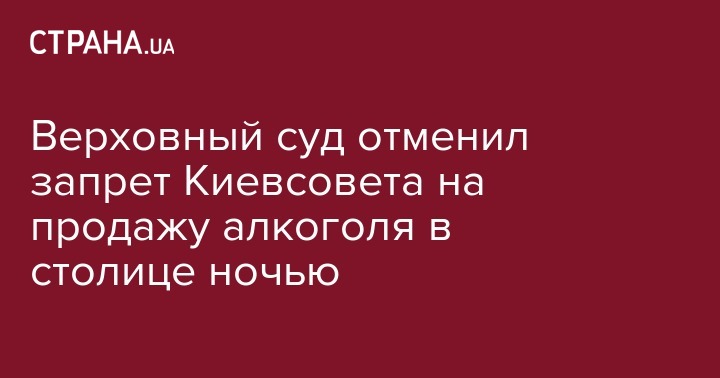 В Верховном суде Украины признали незаконным решение Киевсовета, который в 2017 году запретил продажу алкоголя с 23:00 до 10 часов утра. Об этом говорится в решении суда в Едином реестре судебных решений.