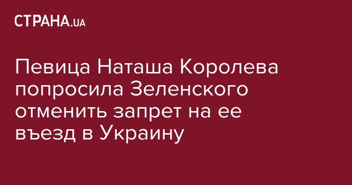 Певица Наташа Королева попросила Зеленского отменить запрет на ее въезд в Украину