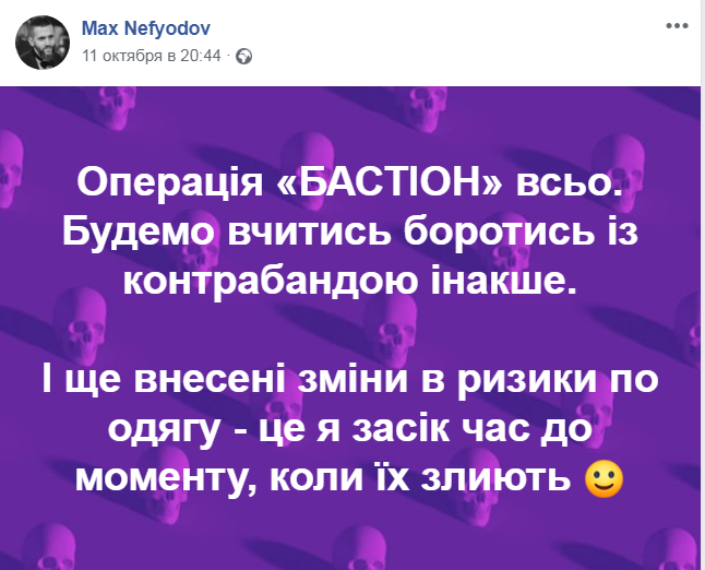 "Операция "Бастион" - все. Будем учиться бороться с контрабандой иначе", – коротко написал Нефедов.