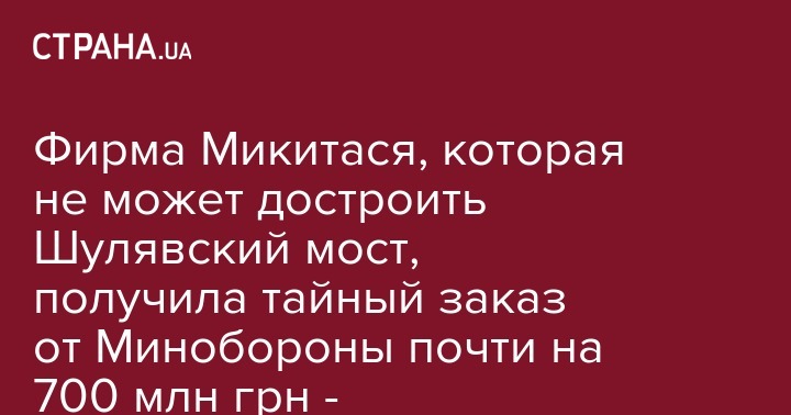 Фирма Микитася, которая не может достроить Шулявский мост, получила тайный заказ от Минобороны почти на 700 млн грн - расследование