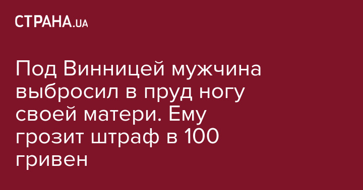 Мужчине, который в Винницкой области выбросил ампутированную ногу матери в пруд, грозит штраф в 100 гривен за загрязнение водоема. Об этом пишет vn.20minut.ua.