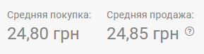В обменках по состоянию на 08:00 средняя покупка - 24,78 грн, средняя продажа - 24,84 грн.
