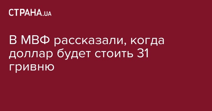 В МВФ рассказали, когда доллар будет стоить 31 гривню