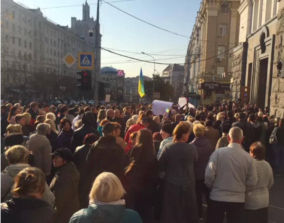 В среду, 16 октября, в Харькове более двух тысяч предпринимателей с "Барабашово" пришли на акцию протеста под горсовет с требованием прекратить рейдерский захват рынка и отклонить инициативу мэра по строительству дороги. По текущему плану она может пройти через "Барабашово".
