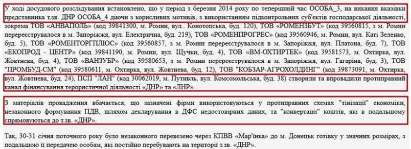 Татьяна Кривобок значится среди учредителей двух фирм: ООО "Фабрика здоровья "Ярославна" и частного сельскохозяйственного предприятия" ЛАН ". Деятельность последней компании в 2016 году привлекла внимание СБУ и прокуратуры. Так, согласно постановлению Шевченковского районного суда Киева, фирма "ЛАН" использовалась для финансирования "ДНР "и "ЛНР ".