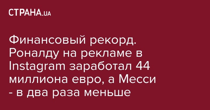 Форвард Ювентуса и сборной Португалии Криштиану Роналду, который в матче с Украиной в отборе на Евро-2020 забил 700-й гол в своей карьере, установил еще один рекорд. Правда в этот раз не футбольный, а финансовый. Португальский футболист стал мировым лидером по доходам в социальной сети Instagram в 2018 году.