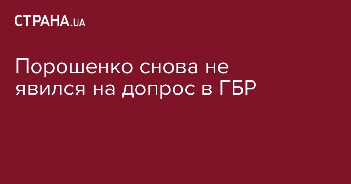 Пятый президент Украины Петр Порошенко не пришел на допрос в Государственное бюро расследований (ГБР). Об этом сообщила "Українські новини" со ссылкой на спикера ГБР Анжелику Иванову.