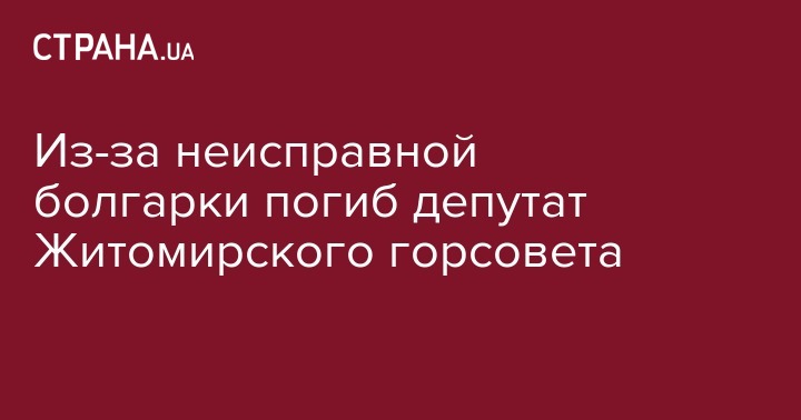 "В возрасте 39 лет при трагических обстоятельствах погиб депутат Житомирского городского совета седьмого созыва Валерий Горб", - говорится в сообщении. Как сообщили в правоохранительных органах, Горб погиб из-за неисправной болгарки, которой он работал у себя дома. "У болгарки лопнул диск, Валерий получил травмы, несовместимые с жизнью", - говорится в опубликованном сообщении.