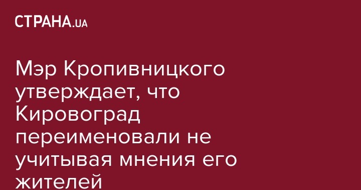 Мэр Кропивницкого утверждает, что Кировоград переименовали не учитывая мнения его жителей