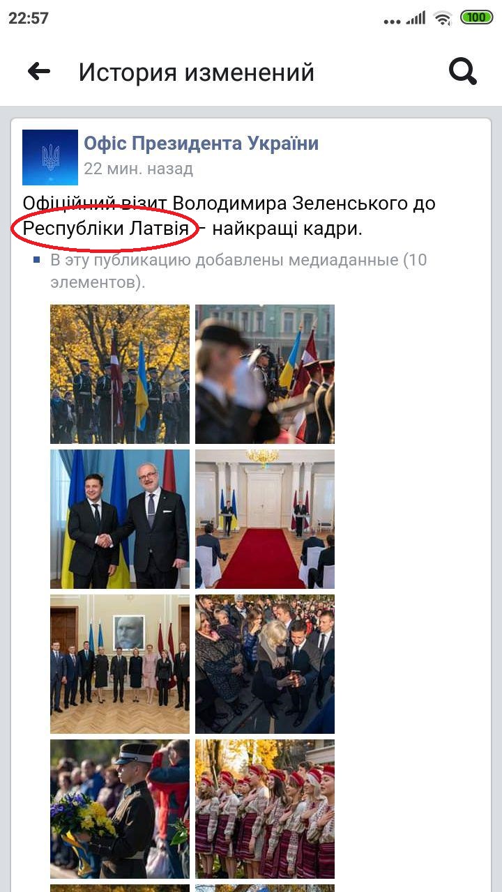 После чего в ОП решили выйти из ситуации самым простым способом - они оперативно удалили первую публикацию и сделали вторую, в которой также допустили ошибку, но уже не перепутали Латвию и Литву, а менее очевидную: вместо "Латвийской Республики" написали "Республика Латвия". Правда, потом оперативно поправились.