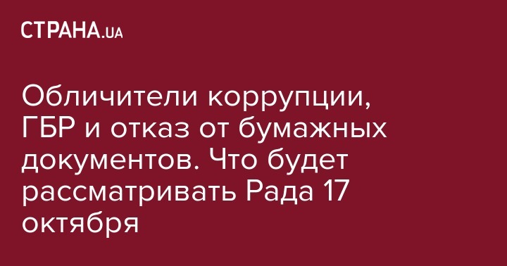 Обличители коррупции, ГБР и отказ от бумажных документов. Что будет рассматривать Рада 17 октября