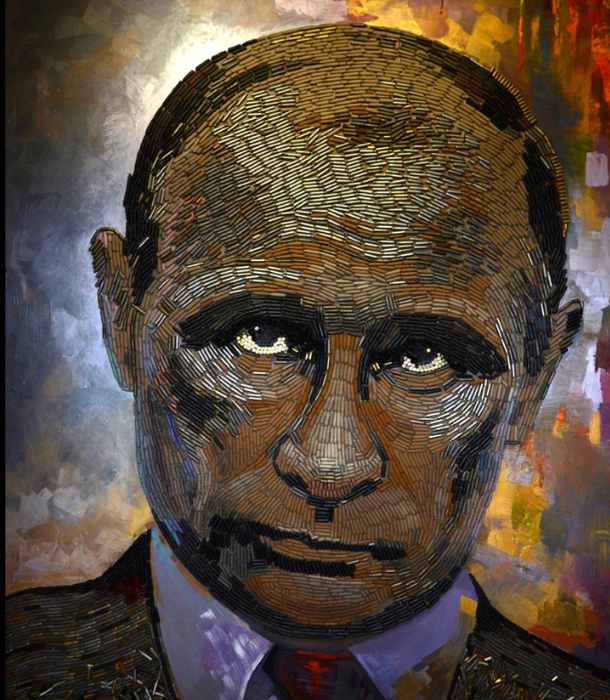 Как он утверждает, речь идет о картине "Лицо войны", которую приобрел Гладковский-старший. Это портрет Владимира Путина, выполненный из гильз.