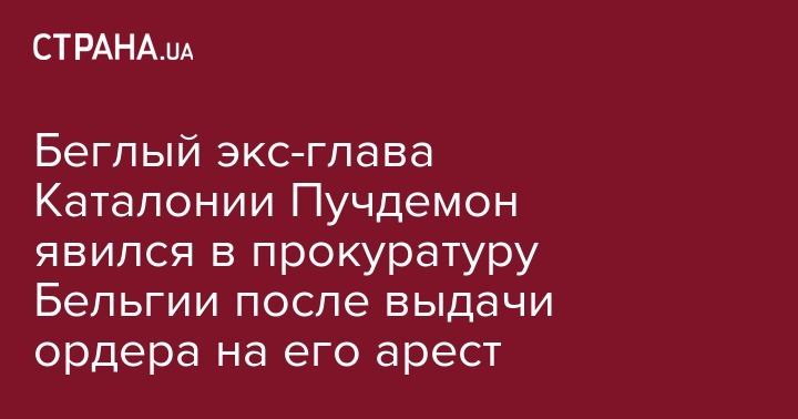 Бывший глава правительства Каталонии Карлес Пучдемон явился в прокуратуру Бельгии после того, как Испания выдала ордер на его арест. Об этом сообщает газета El Periodico со ссылкой на адвоката политика.
