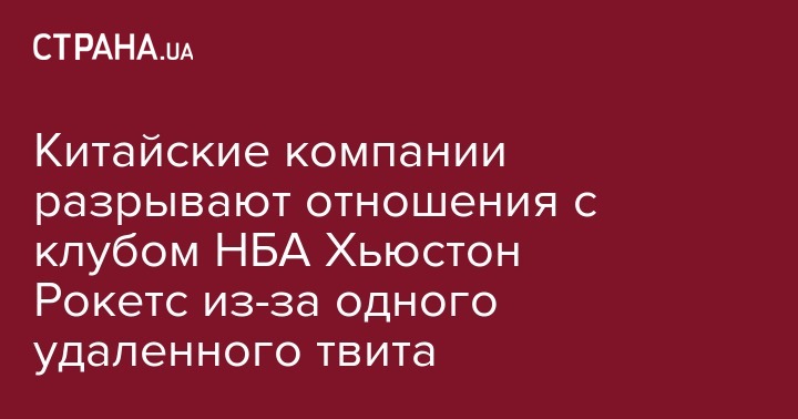 Сразу несколько китайских компаний и Ассоциация баскетбола Китая объявили о прекращении сотрудничества с клубом Национальной баскетбольной ассоциации "Хьюстон Рокетс". Об этом пишет Коммерсант