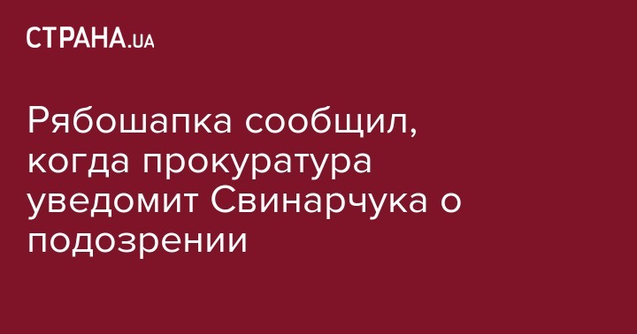 "Проект уведомления о подозрении сейчас лежит у меня на столе и работа над ним завершается", - сказал Рябошапка.