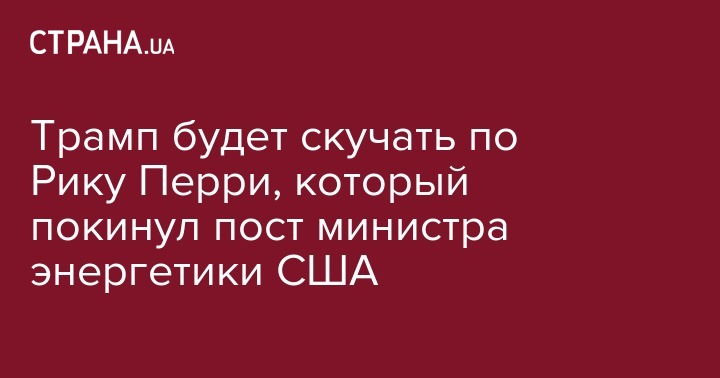 "Мы с Риком (Перри – Ред.) вели разговоры на протяжении шести месяцев. На самом деле я думал, что он может уйти немного раньше. Но у него очень большие планы. Он будет очень успешным, - отметил Трамп, комментируя информацию об отставке министра Перри. - У нас уже есть преемник (на посту министра энергетики – Ред.), мы объявим это уже скоро", - сказал глава Белого дома.