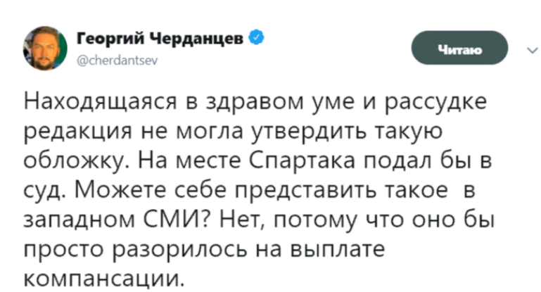 Спортивный комментатор Георгий Черданцев, к примеру, считает, что клуб должен подать в суд на газету.