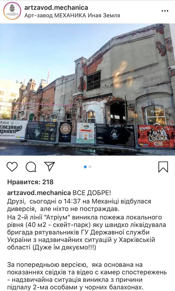 В Харькове неизвестные подожгли скейт-парк на арт-заводе "Механика"