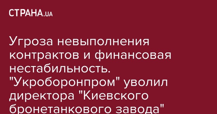Угроза невыполнения контрактов и финансовая нестабильность. "Укроборонпром" уволил директора "Киевского бронетанкового завода"