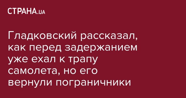 По словам Олега Гладковского, в "Борисполе" он уже ехал в автобусе к трапу самолета, когда его вернули обратно. Пограничники взяли у него паспорт для проверки, и пока проверяли, самолет улетел. После этого он вернулся в город, перебронировал билет, и тем же днем снова поехал в аэропорт, где и был задержан.