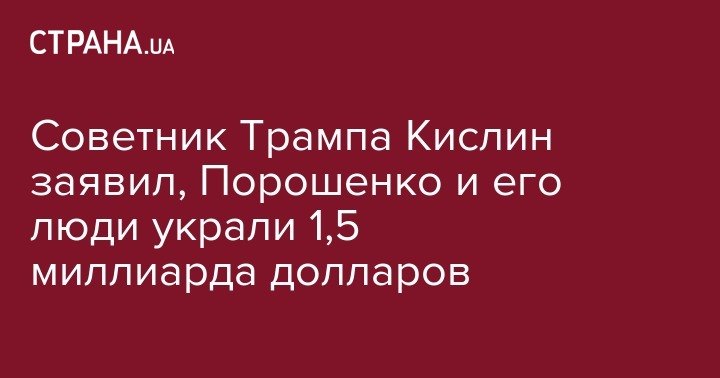 Советник Трампа Кислин заявил, Порошенко и его люди украли 1,5 миллиарда долларов