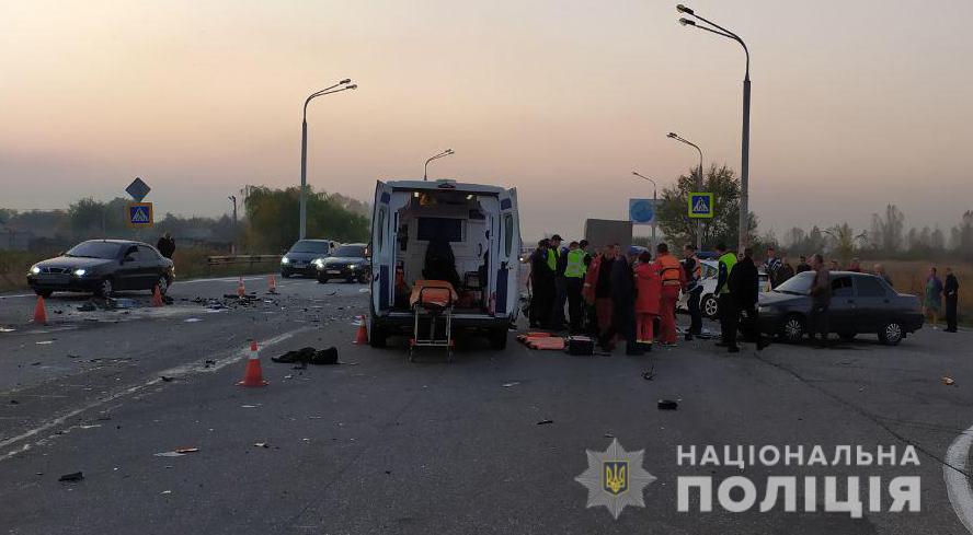 Авария произошла в субботу, 19 октября, около 17:00. Предварительно установлено, что сотрудник полиции, находясь вне службы, двигался на собственном автомобиле Ford Fiesta по Полтавском шоссе. В районе перекрестка с ул. Белградской он выехал на полосу встречного движения, вследствие чего произошло столкновение четырех автомобилей.