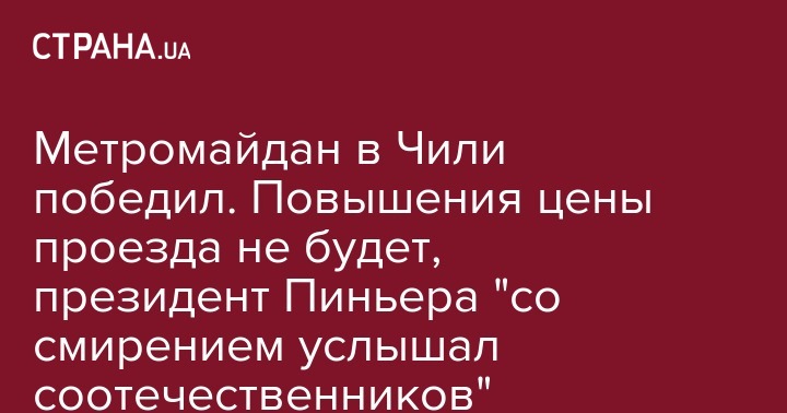 Метромайдан в Чили победил. Повышения цены проезда не будет, президент Пиньера "со смирением услышал соотечественников"