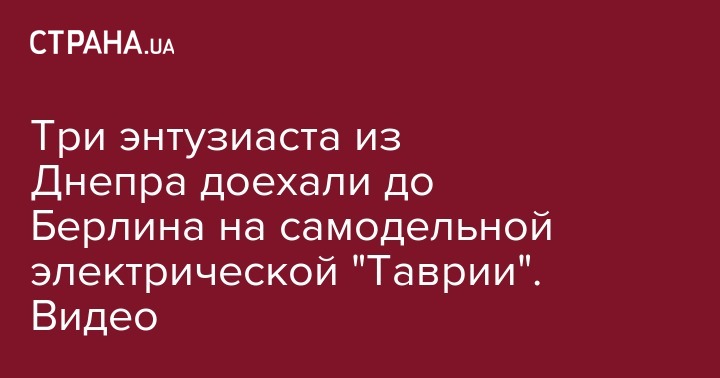 Три украинских автолюбителя преодолели пол-Европы и доехали из Днепра в Берлин на самодельном электрокаре. Они в своем гараже переделали старую "Таврию" в электрический автомобиль, потратив на это 5 тысяч долларов. Об этом говорится в сюжете ТСН.