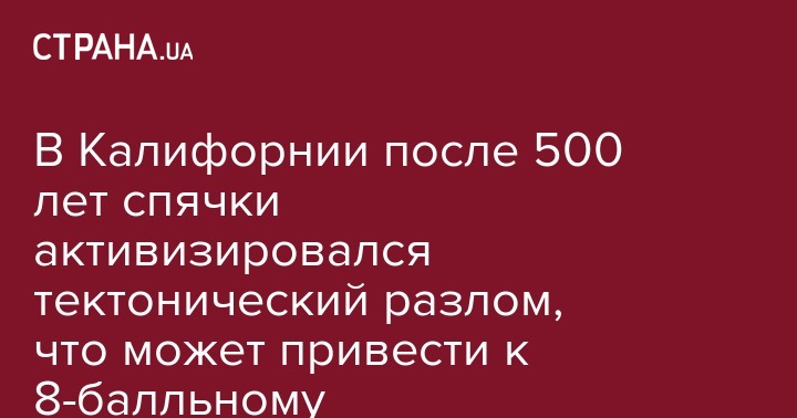 В Калифорнии после 500 лет спячки активизировался тектонический разлом, что может привести к 8-балльному землетрясению