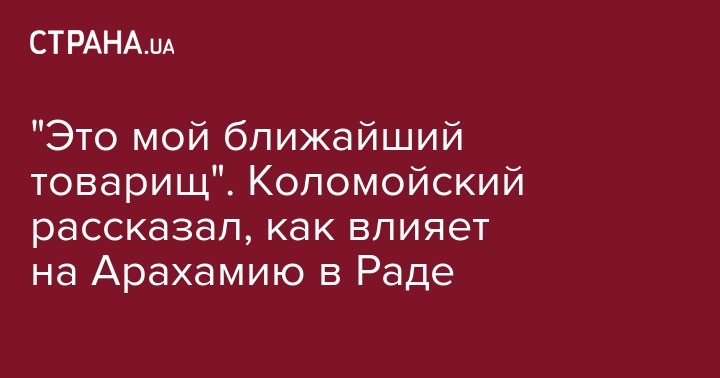 Украинский олигарх Игорь Коломойский рассказал, что глава фракции "Слуга народа" в Верховной Раде Давид Арахамия является его "ближайшим товарищем", на которого он имеет влияние. Об этом пишут "НикВести".