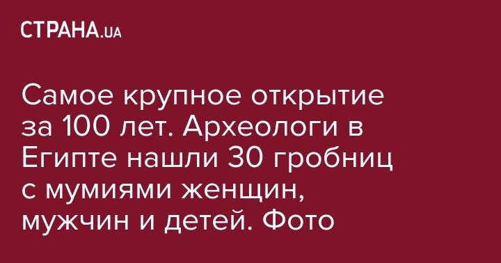 В Египте археологи нашли 30 гробниц с мумиями, что стало самым крупным открытием за более чем 100 лет. Об этом сообщает CNN.
