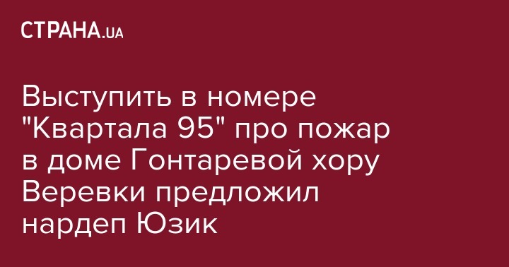 Поучаствовать в скандальном номере студии "Квартал 95" о пожаре в доме экс-главы НБУ Валерии Гонтаревой хору имени Веревки предложил нардеп от "Слуги народа" Юрий Корявченков, известный как артист "Квартала" Юзик. Об этом в комментарии "Радио Свобода" сообщил художественный руководитель коллектива Зиновий Коринец.