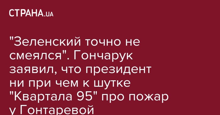 "Я неоднократно видел настоящую реакцию президента Зеленского на историю с пожаром госпожи Гонтаревой, эта реакция была абсолютно правильная и человеческая. Никто не может радоваться тому, что у человека горит дом, это точно неправда, и президент Зеленский точно над этим не смеялся", - сказал Алексей Гончарук.