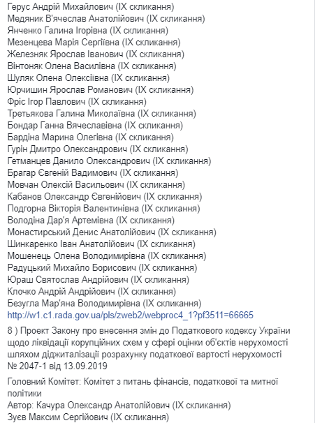 "Причина - обращение в ОП нескольких депутатов, которым не понравилось голосование челнов комитета, где было принято решение об уничтожении монополии на оценочную деятельность т.н. «площадок Яценко» + демонополизации рынка госзакупок через систему Prozorro, а также снижение цен на участие в торгах + обеспечение прозрачной работы СЕТАМ / АРМА", - говорится в сообщении.