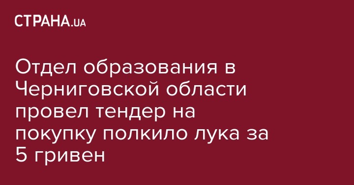 Отдел образования Нежинской районной госадминистрации провел тендер на приобретение 0,5 кг лука. Победитель торгов получил за товар 5 грн. Соответствующие сведения размещены в системе Prozorro.