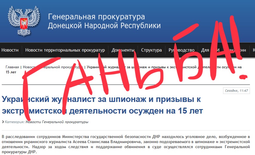 В Донецке журналиста Асеева приговорили к 15 годам тюрьмы за шпионаж, в НСЖУ этим возмущены