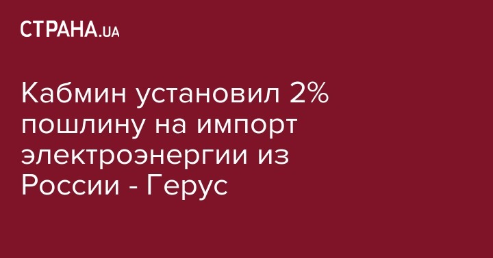 Кабмин установил 2% пошлину на импорт электроэнергии из России - Герус