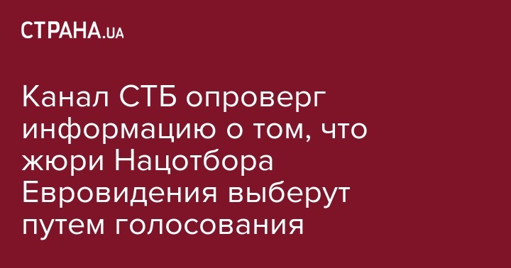 Канал СТБ опроверг информацию о том, что жюри Национального отбора на Евровидение-2020 будут выбирать зрители путем голосования. Об этом сообщает "112 Украина".