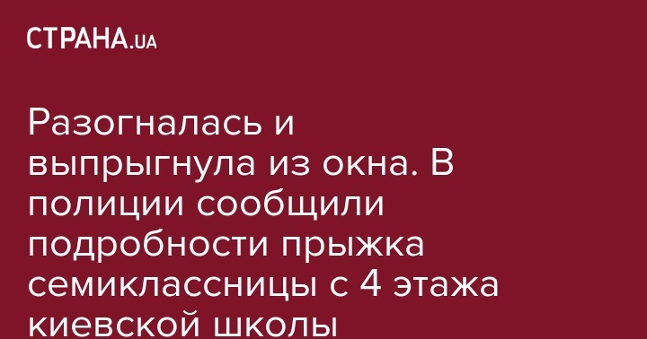 В полиции сообщили, что ученица 7 класса школы №173 в Киеве, которая упала с 4 этажа учебного заведения, сама выпрыгнула из окна. Об этом сообщает пресс-служба полиции Киева